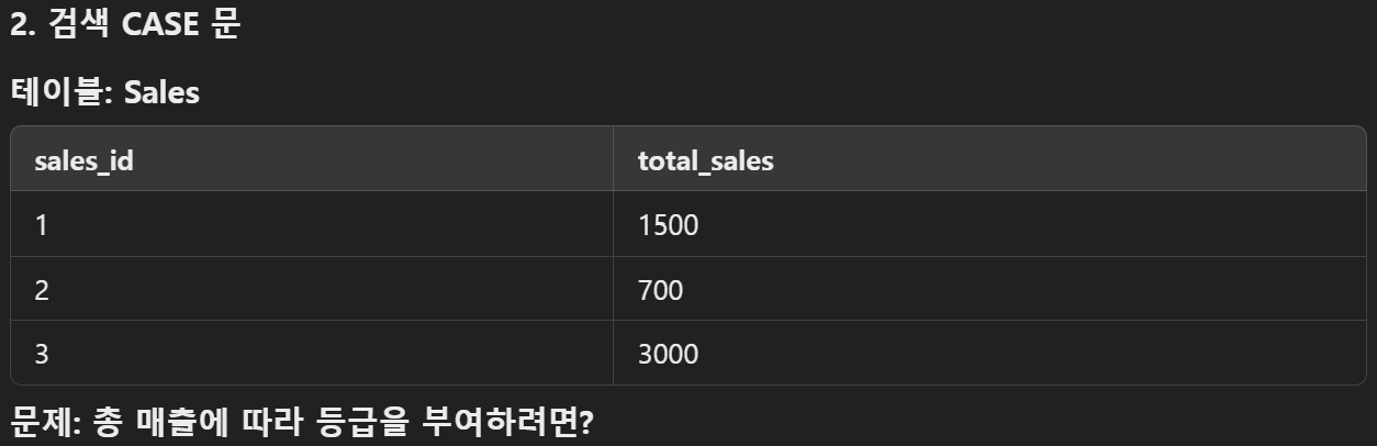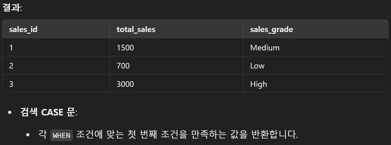 - ELSE: 모든 조건이 거짓일 경우 반환할 기본값(생략 가능).