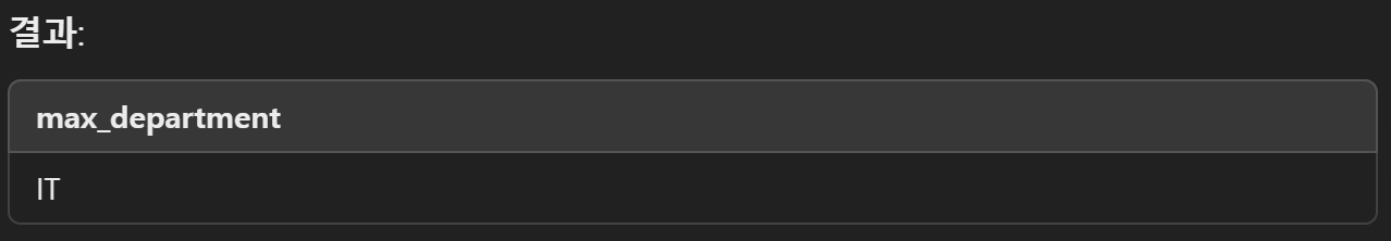 SELECT MAX(department) AS max_department