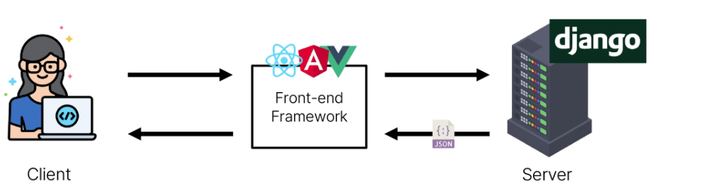 - 지금까지 Django 서버는 사용자에게 페이지(html)만 응답하고 있었습니다.