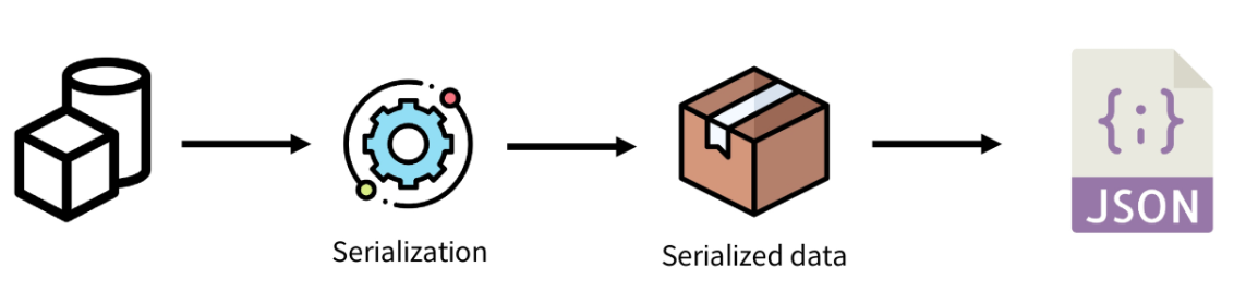여러 시스템에서 활용하기 위해 데이터 구조나 객체 상태를 재구성할 수 있는 포맷으로 변환하는 과정입니다.