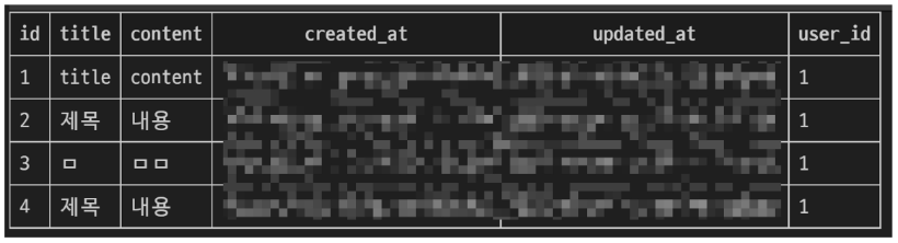 게시글 작성 후 테이블을 확인합니다.