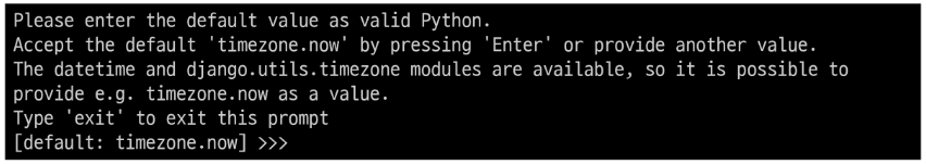 - 추가하려는 데이터가 날짜 데이터이기 때문에 직접 입력하기 보다 Django가 제안하는 기본 값을 사용하는 것을 권장