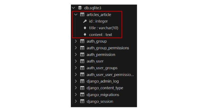 1.2 migrate 후 DB 내에 생성된 테이블 확인