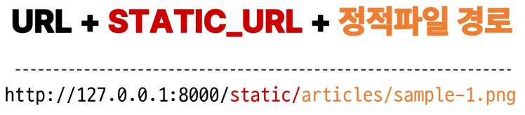 <!-- articles/index.html --> {% load static %} <img src="{% static 'articles/sample-1.png' %}" alt="img"> - STATIC_URL