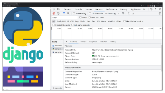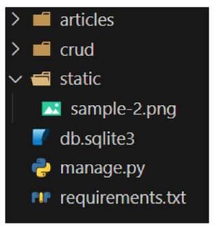 - articles/static/articles/ 경로에 이미지 파일을 배치하면 아래와 같이 보입니다.