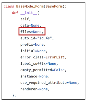 ModelForm 상위 클래스 BaseModelForm의 생성사 함수 키워드 인자입니다.