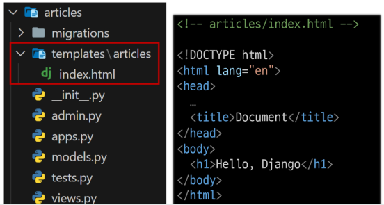 - templates 폴더 안에 articles 폴더 생성