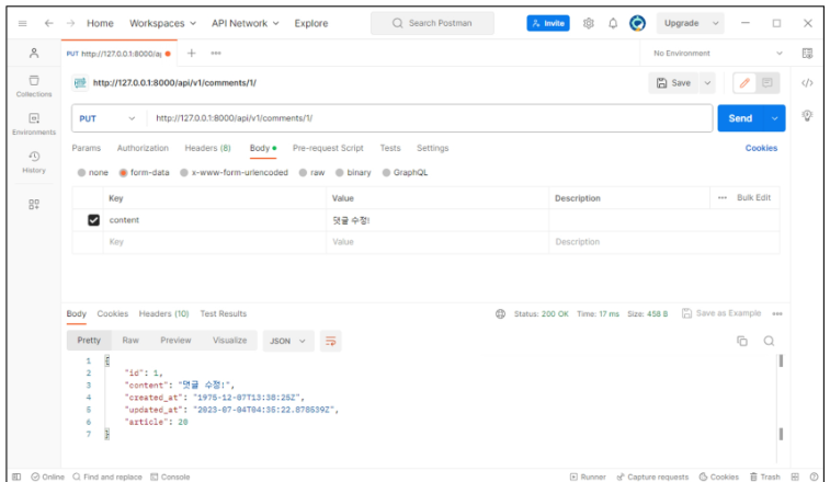 Django에 대하여(36)_DRF with N:1 Relation - DELETE & PUT 본문