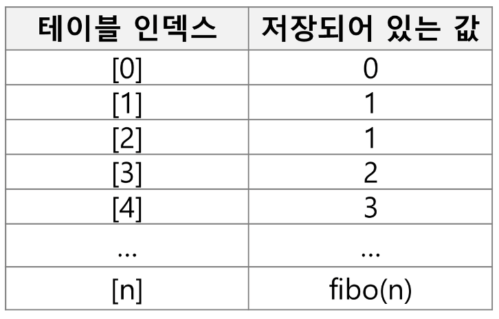 - 3) 그 결과는 테이블에 저장하고, 테이블에 저장된 부분 문제의 해를 이용하여 상위 문제의 해를 구합니다.