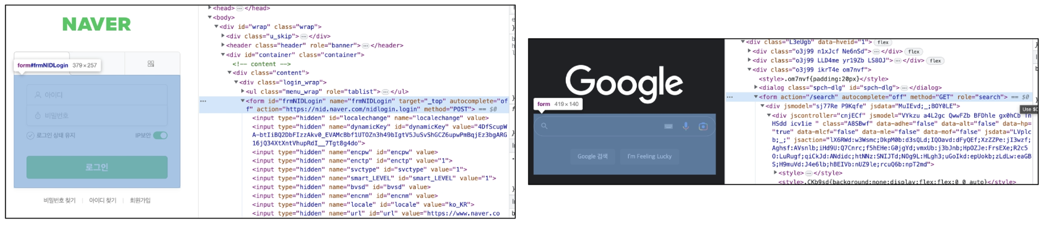 실제 웹 서비스에서 form이 사용되는 예시