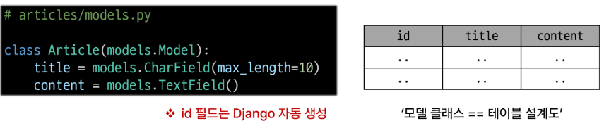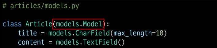 - django.db.models 모듈의 Model이라는 부모 클래스를 상속받습니다.