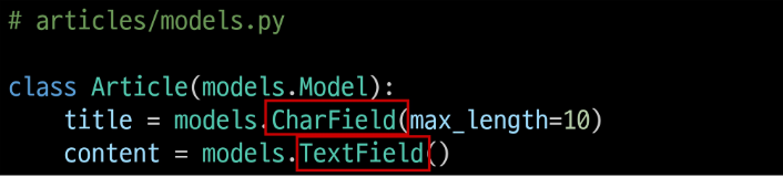 - model Field 클래스로 테이블 필드의 "데이터 타입"입니다.