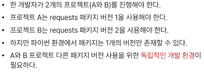 가상 환경이 필요한 이유는 아래와 같습니다: