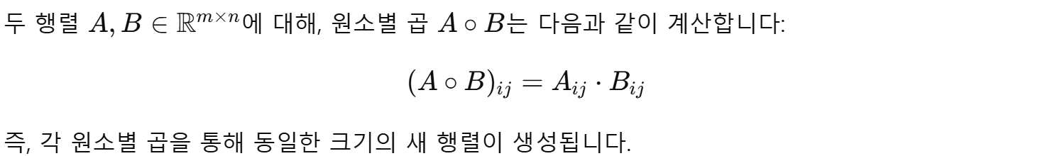 이 연산은 Hadamard Product(하다마르 곱)라고도 불립니다.