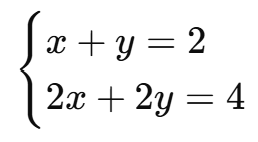 두 번째 식은 첫 번째 식을 2배 한 것입니다. 즉, 두 식은 같은 직선을 나타냅니다.