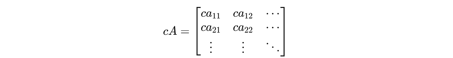 스칼라(하나의 숫자) c와 행렬 A를 곱할 때는, 행렬의 모든 원소에 c를 곱합니다.