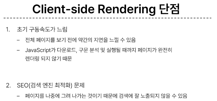 Client-side Rendering(CSR)은 클라이언트에서 화면을 렌더링 하는 방식입니다.