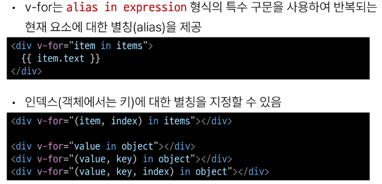소스 데이터(Array, Object, number, string, Iterable)를 기반으로 요소 또는 템플릿 블록을 여러 번 렌더링 하는 함수입니다.