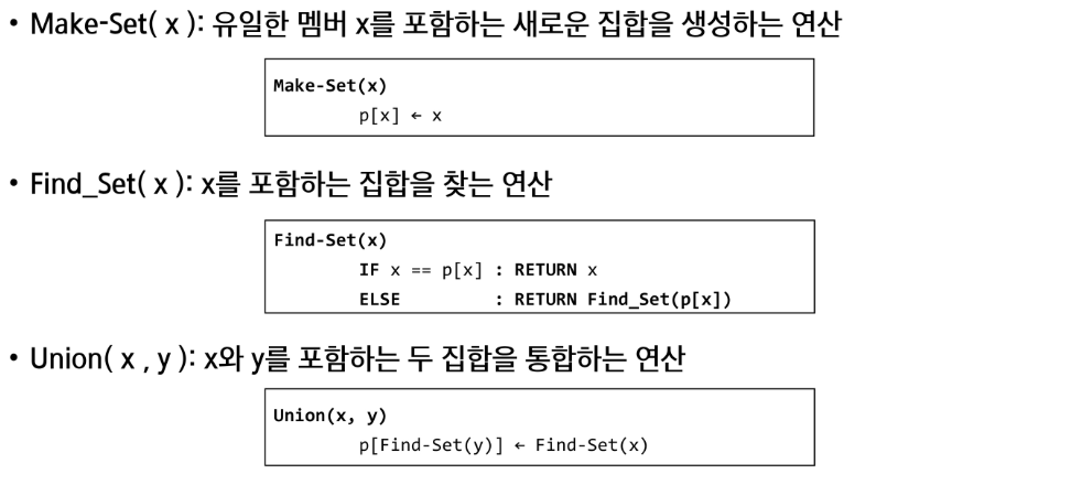 - 상호배타 집합 연산