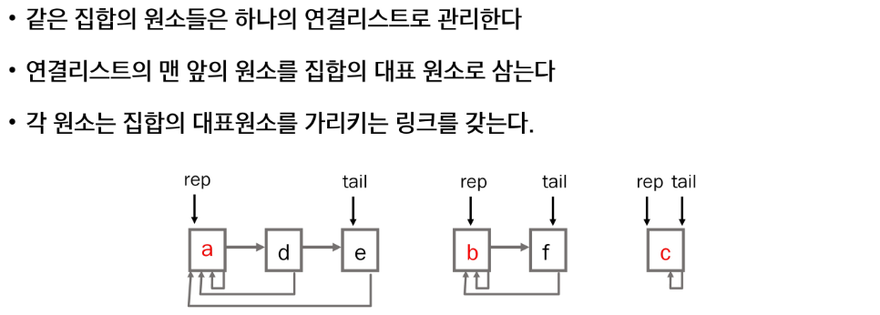 - 집합에 속한 하나의 특정 멤버를 통해 각 집합들을 구분합니다. 이를 대표자(representative)라 합니다.