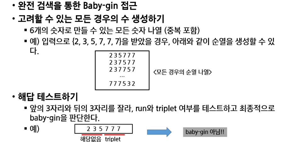 - 6자리의 숫자를 입력 받아 어떻게 Baby-gin 여부를 찾을 건가요?