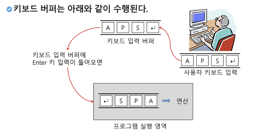 - 버퍼는 일반적으로 입출력 및 네트워크와 관련된 기능에서 이용됩니다.