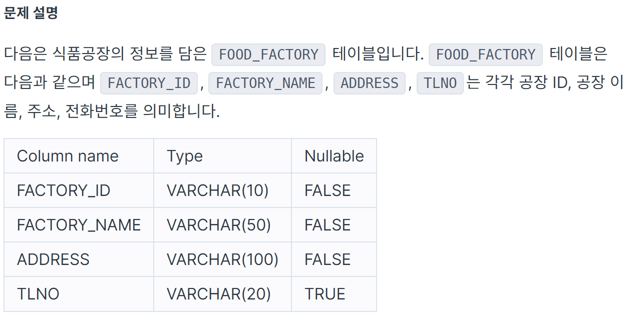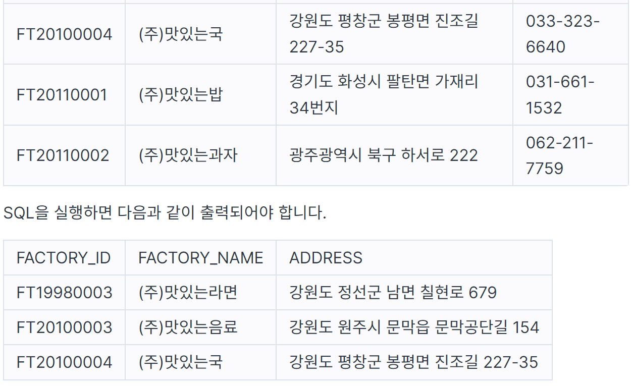 강원도에 위치한 생산공장 목록 출력하기 _ Lv1. 프로그래머스