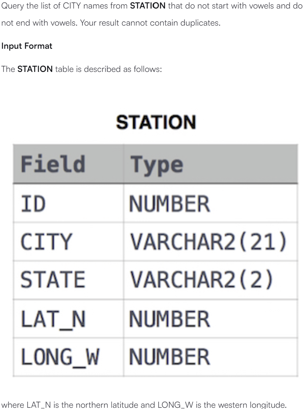 WHERE CITY REGEXP '^[^aeiouAEIOU]'