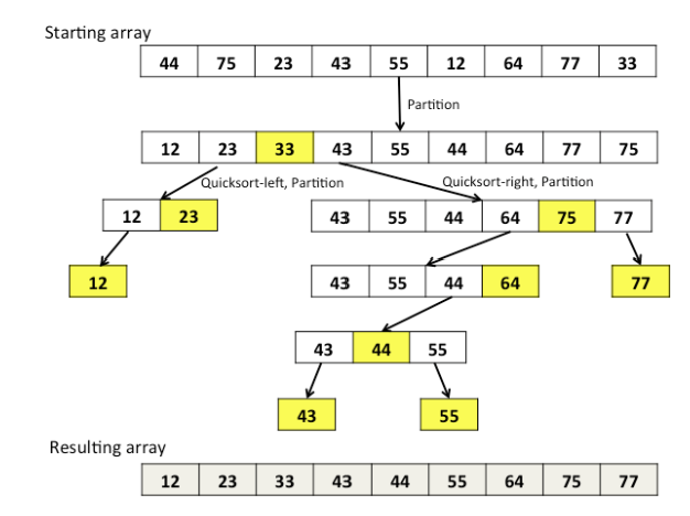 "피벗(Pivot)을 기준으로 작은 값과 큰 값을 나누면서 정렬하는 빠른 정렬 알고리즘"