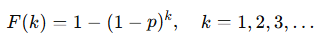 - 성공이 1~k번째 시행에서 발생할 확률: 1 − (1 − p)k