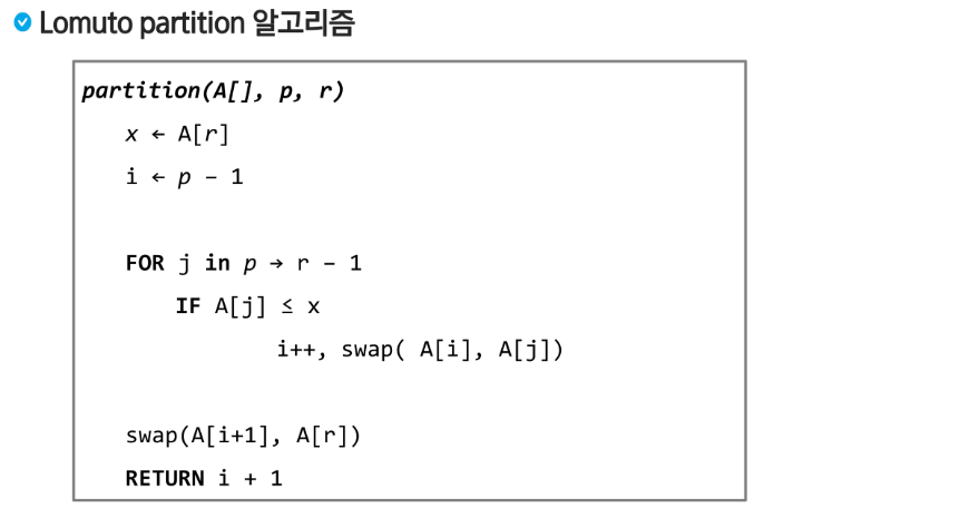 - 또, 각 부분 정렬이 끝난 후, 병합 정렬은 "병합"이란 후처리 작업이 필요하나, 퀵 정렬은 필요로 하지 않습니다.
