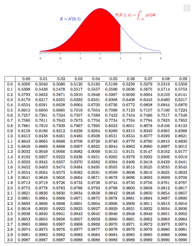 정규 분포 N(0,1) (평균 0, 분산 1)에서: