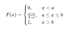 즉, 균등 분포의 CDF는 선형 함수 형태로 증가한다.