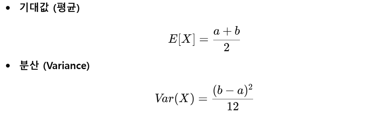 균등 분포의 기댓값과 분산은 다음과 같이 계산된다: