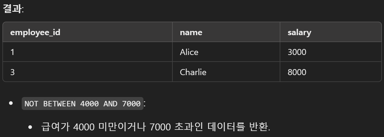 4. NOT BETWEEN 사용