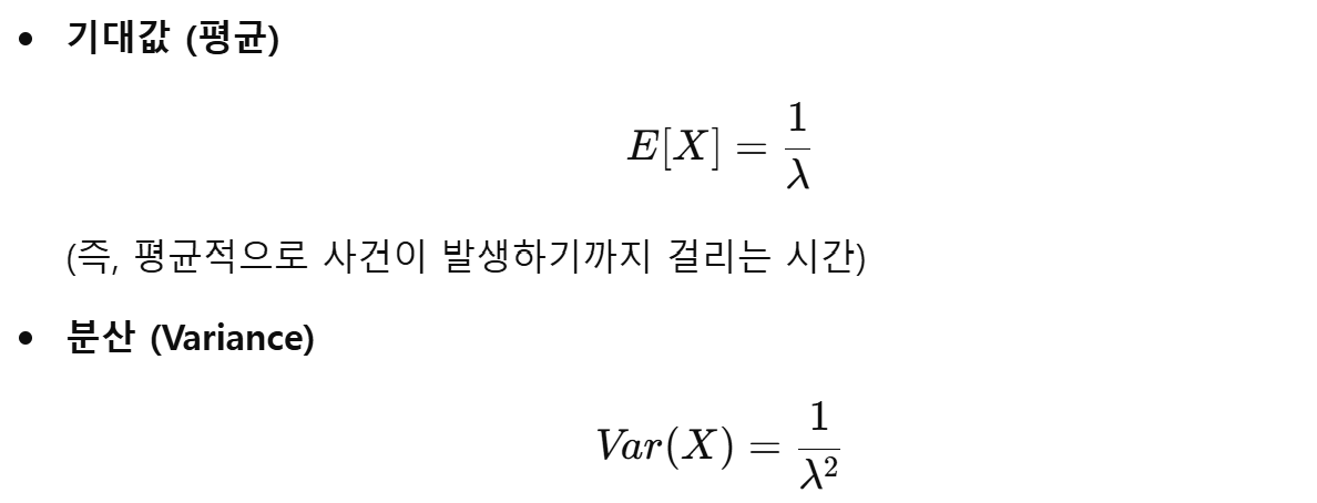 - λ = 사건이 단위 시간당 발생하는 평균 횟수 (rate parameter)