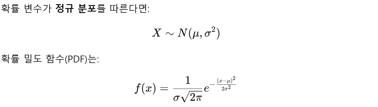 - σ2 = 분산 (Variance, 데이터의 퍼짐 정도)