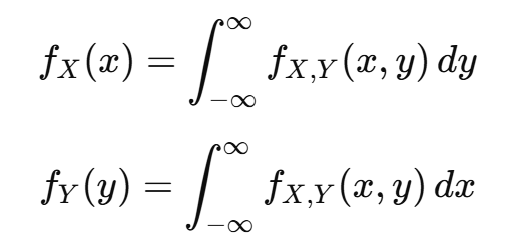 다른 변수의 값을 고려하지 않고, 전체 분포에서 그 변수를 "통합(integrate out)"해서 얻는다.