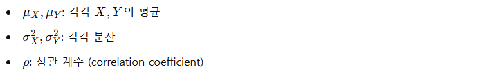 두 확률 변수 X, Y가 다음과 같은 이변량 정규 분포를 따른다고 하자: