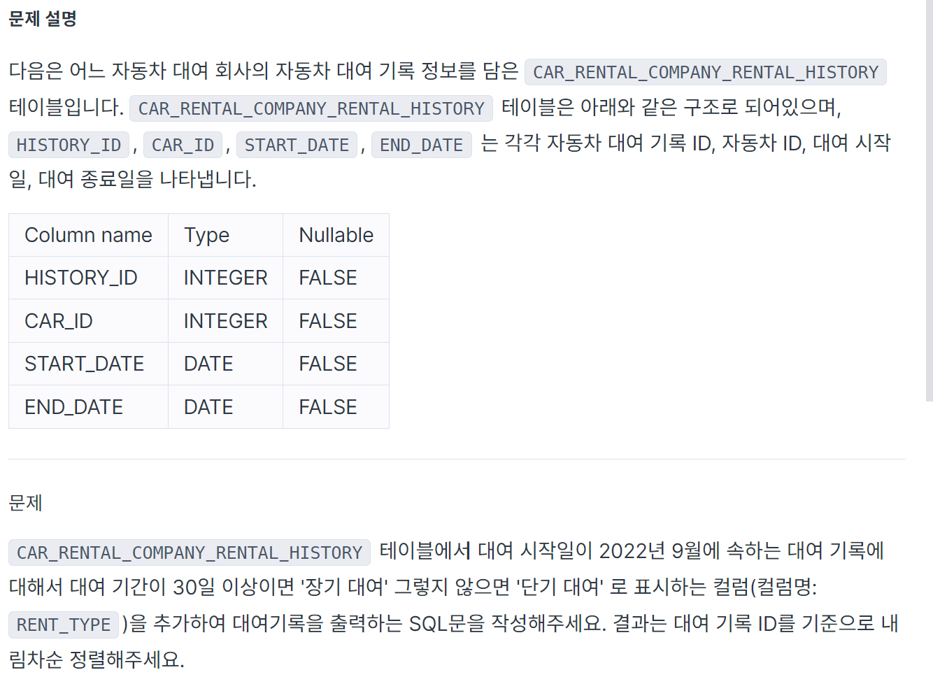 자동차 대여 기록에서 장기/단기 대여 구분하기 _ Lv1. 프로그래머스 *
