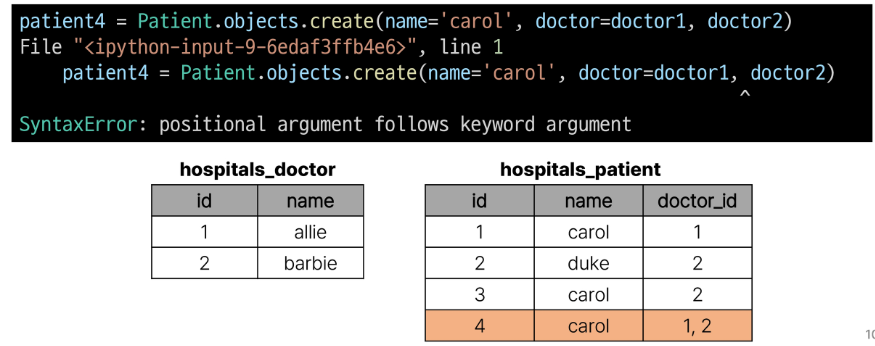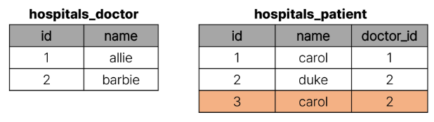 patient1 = Patient.objects.create(name='carol', doctor=doctor1)