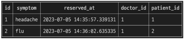 reservation1 = Reservation(doctor=doctor1, patient=patient1, symptom='headache')