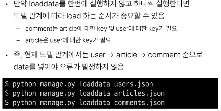 Fixtures 데이터를 데이터베이스로 불러옵니다.