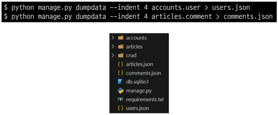 반드시 dumpdata 명령어를 사용하여 생성합니다.