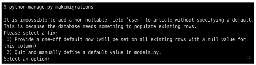 추가되는 외래키 user_id에 어떤 데이터를 넣을 것인지 직접 입력해야 합니다.