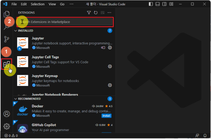 VSCode extension 설치: 원활한 코드 작성을 위해 확장 프로그램 설치를 권장합니다.