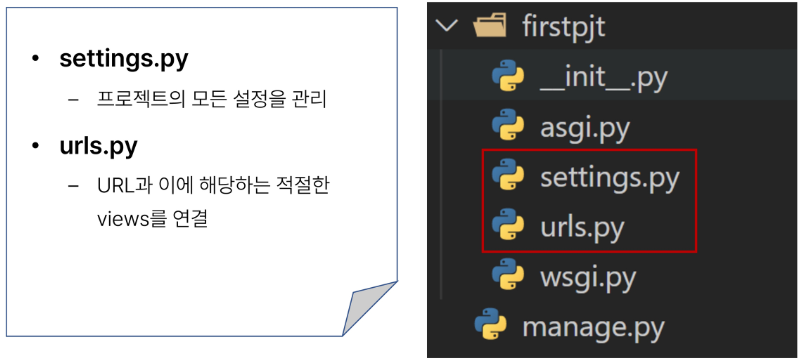 Django project는 애플리케이션의 집합으로 DB 설정, URL 연결, 전체 앱 설정 등을 처리합니다.