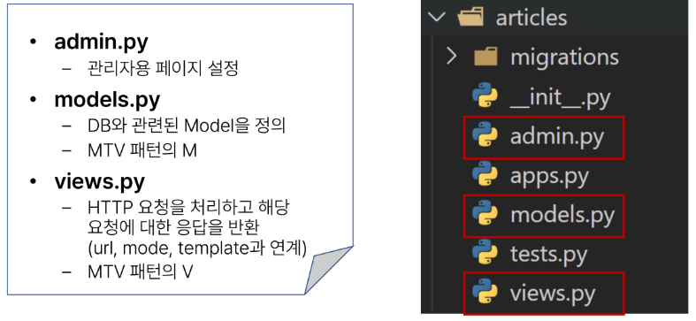 - articles 앱 폴더 안에 templates 폴더 생성 (폴더명은 반드시 templates이어야 하고 개발자가 직접 생성해야 합니다!!)