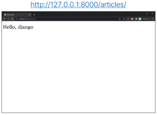http://127.0.0.1:8000/articles/ 로 요청이 왔을 때 views 모듈의 index 뷰 함수를 호출합니다.
