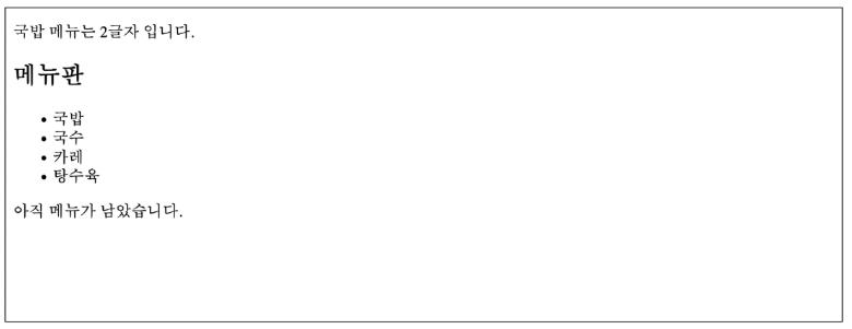 <p>{{ picked }} 메뉴는 {{ picked|length }}글자 입니다.</p>
